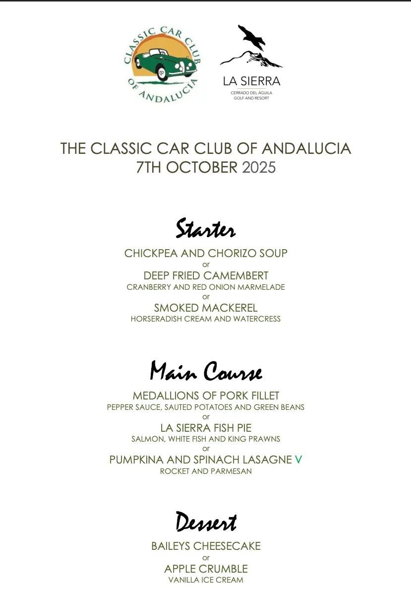 As always we will have a super lunch at La Sierra in excellent company! Starting with complimentary Cava at 2.00 Tuesday October 7th with lunch served at 2.30 pm, three courses with all wines & waters or beer included, tea and coffee to follow and still all for only €30. I hope to see many of you there!